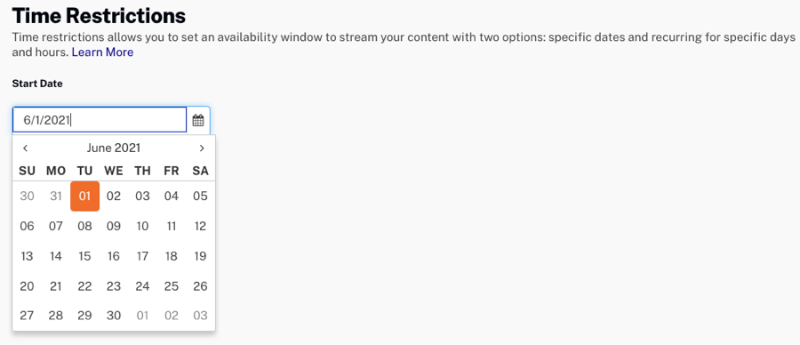 時間制限を使用すると、指定した開始日時以降に動画の再生を制限できます。再生権限に時間制限を設定するには、以下の手順に従ってください: