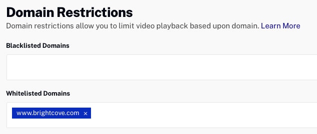 - ホワイトリストに登録済みドメイン フィールドに、視聴を許可したいドメインを入力します。