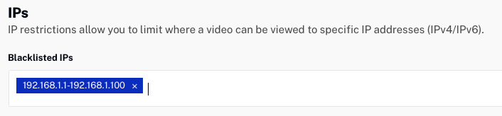 IPアドレスの範囲に基づいて視聴を制限するには、IPによる再生権限を使用します。