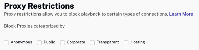 特定の種類の接続に基づいて動画再生を制限するために、プロキシ制限を設定できます。再生権限にプロキシ制限を設定するには、以下の手順に従ってください: