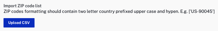 郵便番号を含む .csv ファイルをアップロードすることも可能です。アップロード CSV をクリックして、アップロードするファイルを選択します。