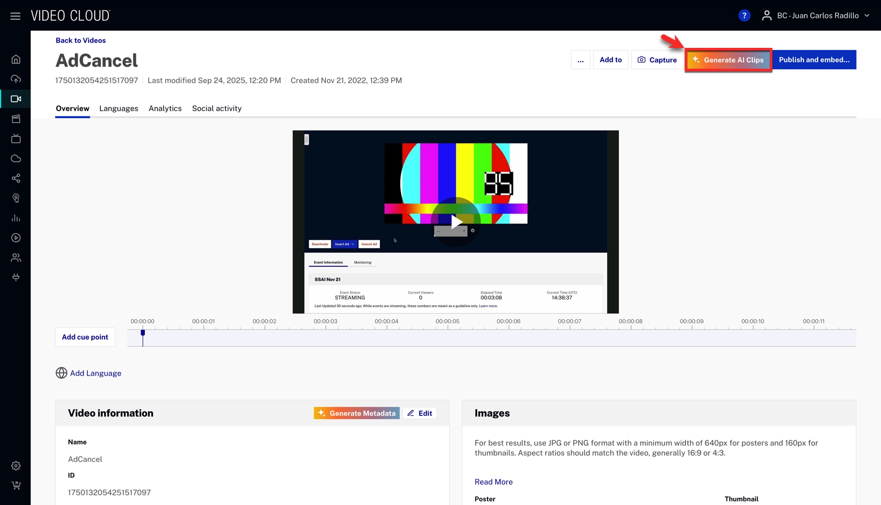 AI コンテンツ マルチプライヤーは、動画のハイライトを自動的に選択し、指定したアスペクト比に合わせてコンテンツを再構成することで、短いクリップを生成します。生成されたクリップは、プレビュー、ダウンロード、または取り込みを行い、完全な Brightcove 動画として利用できます。