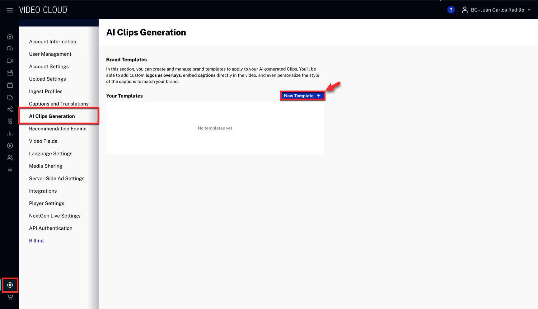- 管理者 モジュールで、AI クリップ生成 に移動します。