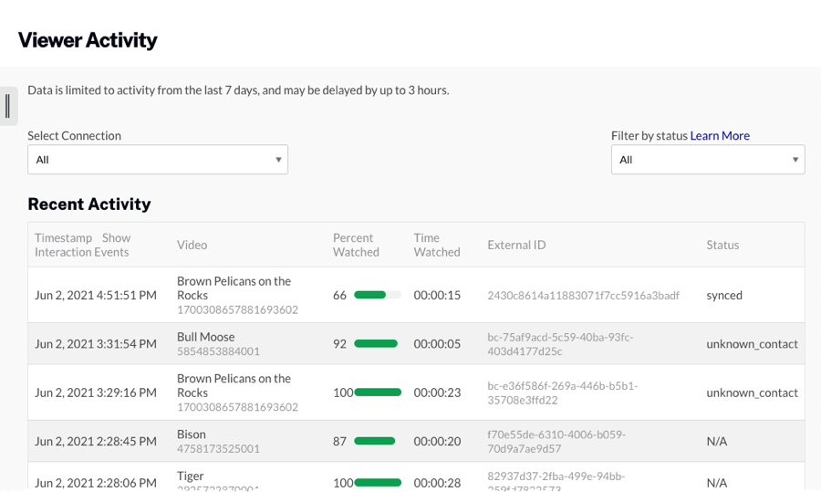 - 視聴者プロファイル - 視聴者ごとの動画アクティビティを表示するためのもの。詳細は視聴者プロファイル情報の表示 をご覧ください。