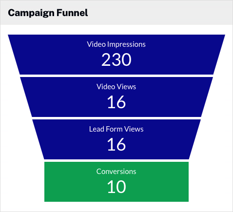 Campaign ファネルでは、選択した期間における Campaign リードフォーム付きの Campaign 対応プレーヤー内動画の指標が表示されます: